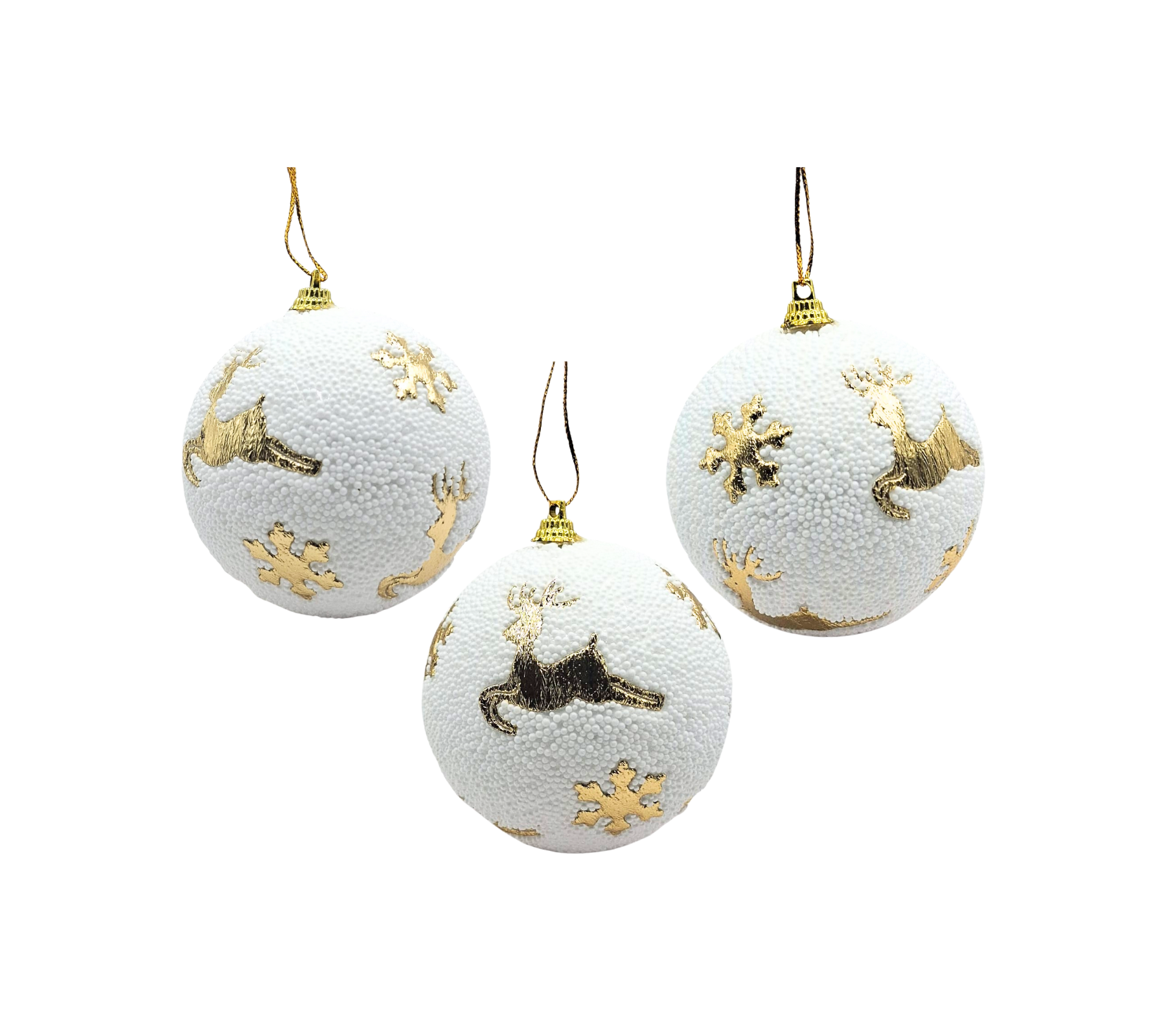 Bola Decorativa Natalina Árvore Natal Branco/Dourado 8cm 3Un