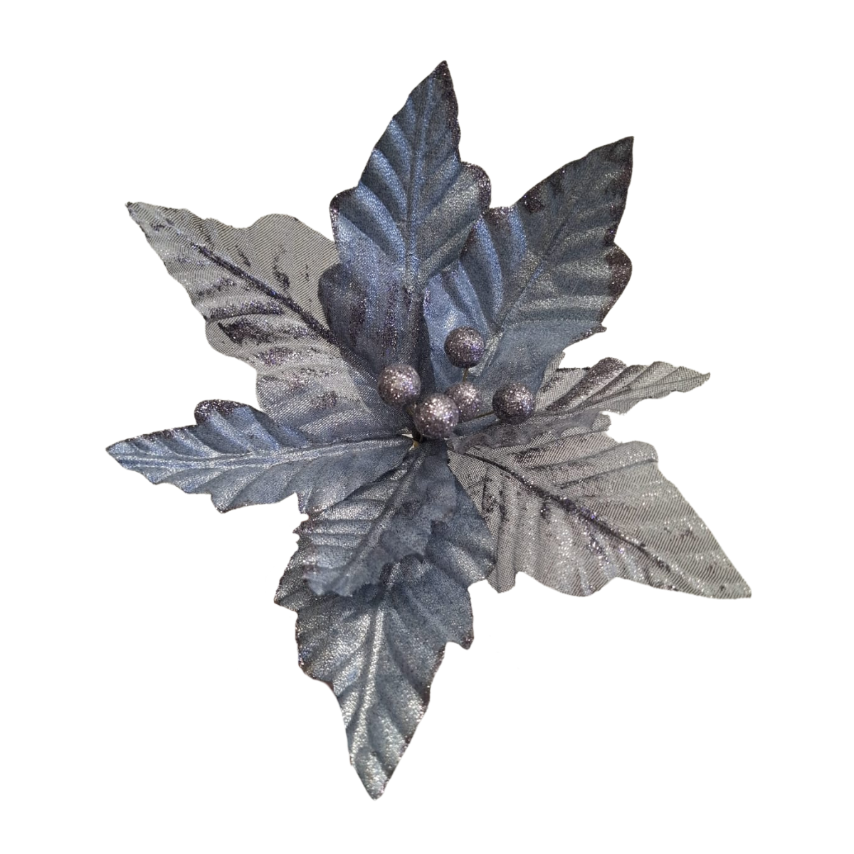 Pick Flor Poinsetia Prata Decoração Natal 27 Cm