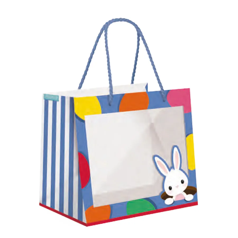 Sacola Azul com visor Páscoa Coelho Premium P 22x20x14 cm - 1un