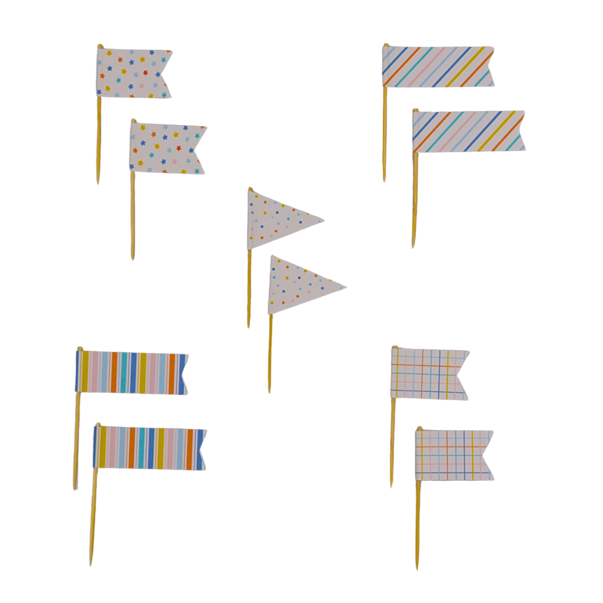 Topper para doces e cupcakes de bandeirinhas coloridas, em papel e palito de bambu, ideal para decorar sua festa e seus docinhos com muito charme e capricho!